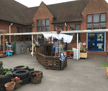 Welcome to our blog! In this post, we'll take you on a journey through our creative process and Tell how it all began. I work in a school and we were going to start the exciting topic about pirate after half term. We needed a bit of wow to kick off the first day so I spent my week building us out very owe ship to spark the children's interest and fuel their imaginations. We when on many a voyage and a lot of us had to walk the plank! The castle in the back ground was also one of my early pieces and a first attempt at larger items that flat pack down for easy storage.